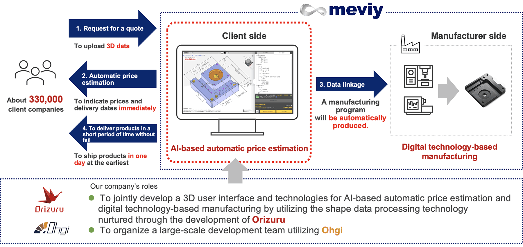 We will utilize the shape data processing technology nurtured through the development of “Orizuru” for AI-based automatic price estimation and digital technology-based manufacturing.