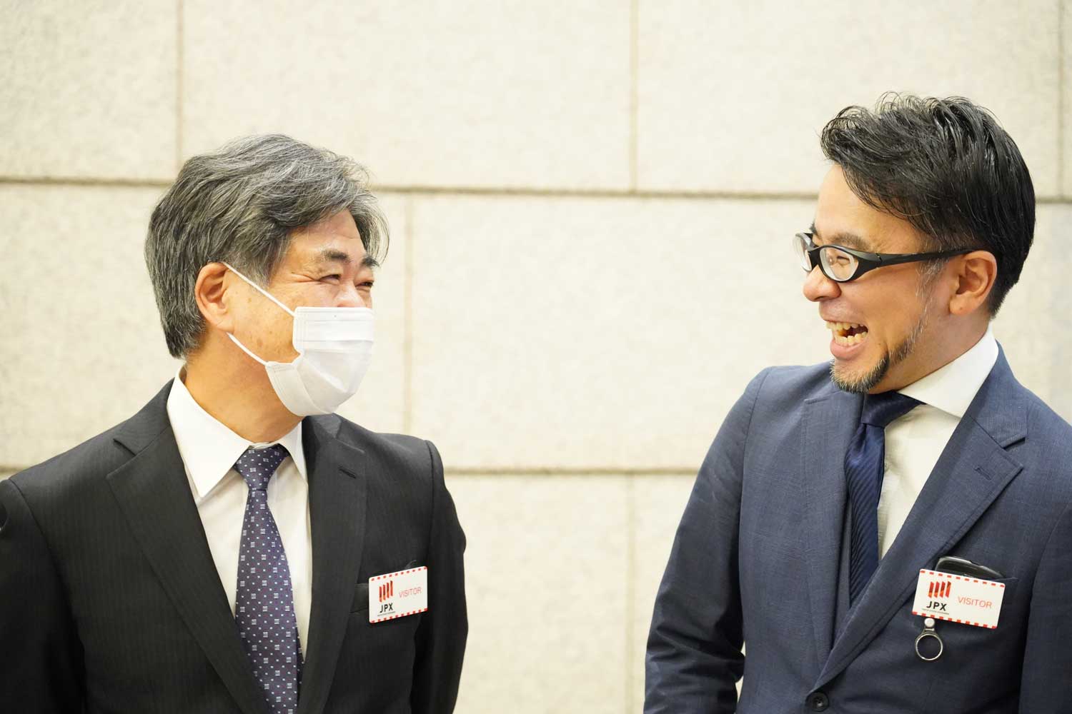 ※この上下が紅白ストライプ状になった入館バッジは、上場セレモニー対象者のみの特別仕様(通常は赤線のみ)