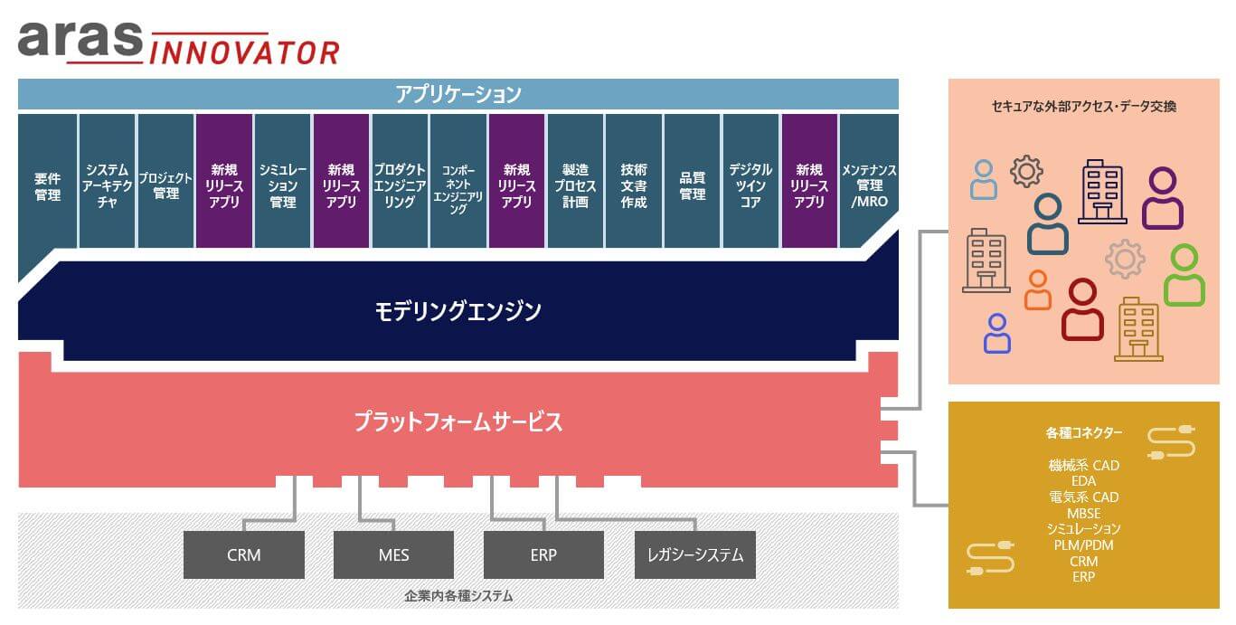 Aras Innovator は、独自のオープンでレジリエントなアーキテクチャにより、ものづくりのデータ管理のプラットフォームとして製造業を支えます。