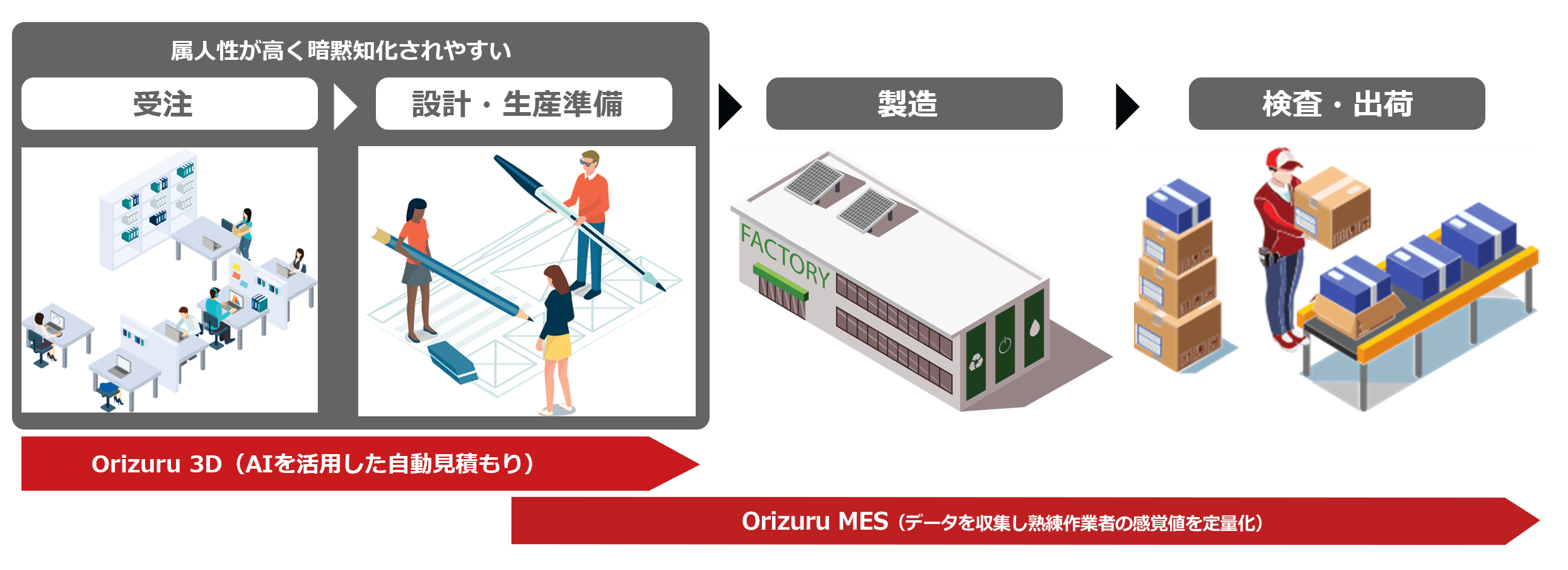 Orizuruを活用したスマート化により、属人性低減・省人化し、企業存続・拡大を実現できます。しかし、既存設備、業務フローは企業によりまちまちで、単純な導入では期待通りの効果が得られません。そこで、DX実現プランの策定から支援可能なCCTにぜひご相談ください。